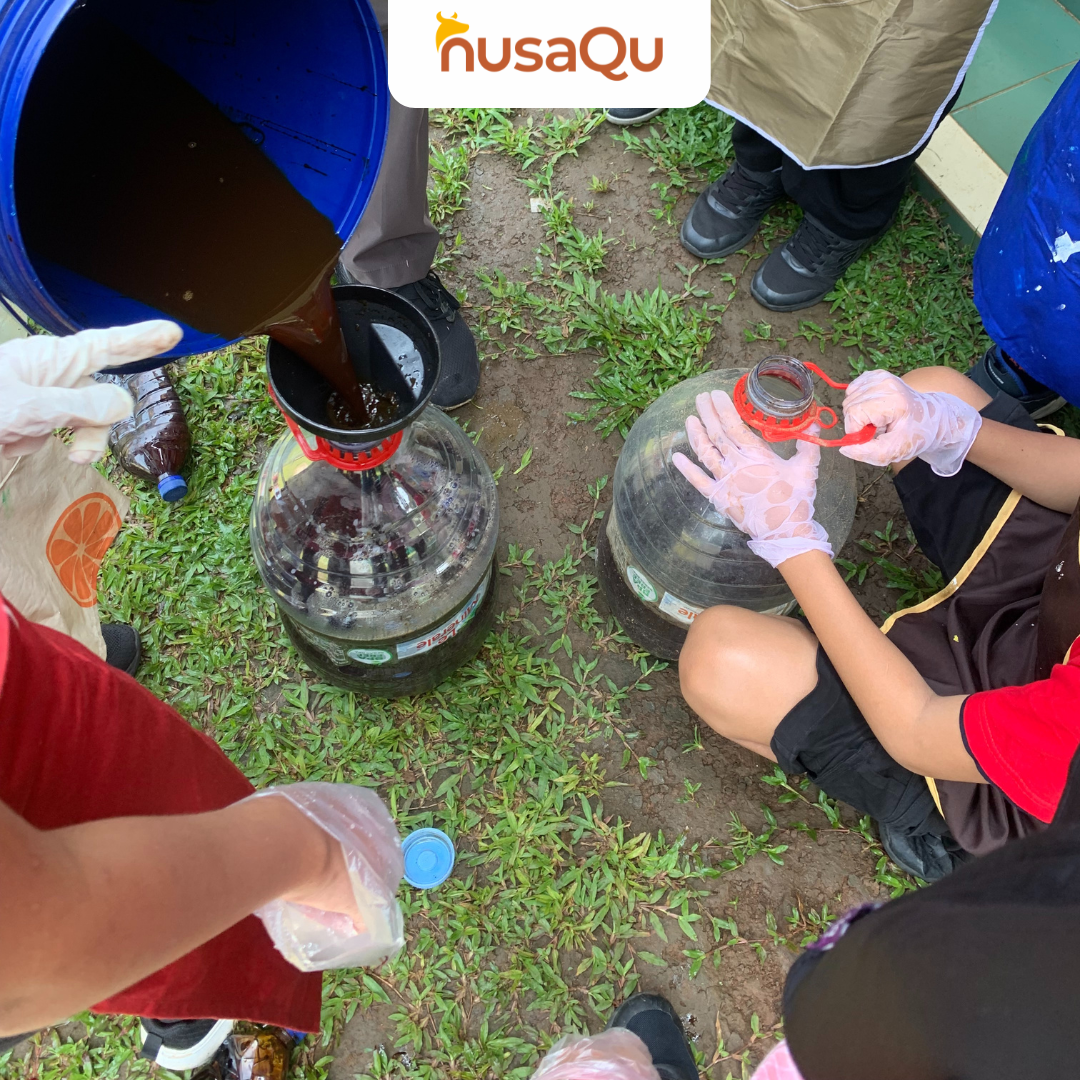 Kegiatan praktik ini didampingi oleh kakak-kakak dari tim nusaQu dan guru pendamping. Meski awalnya beberapa siswa merasa takut untuk memegang cacing atau mencium aroma dari biourine, akhirnya mereka mulai berani terlibat aktif. Mereka belajar menuangkan urine ke dalam wadah fermentasi, menyentuh langsung cacing, hingga mencampur media tanam.
