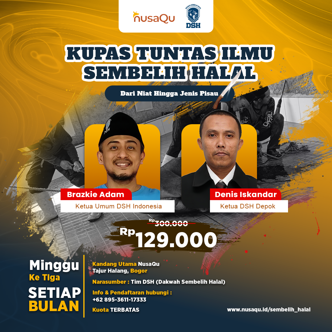 Program ini dirancang untuk calon juru sembelih, pengelola rumah potong, dan pelaku usaha peternakan yang ingin memahami seluruh aspek penyembelihan halal secara teori dan praktik β mulai dari fiqih penyembelihan, penanganan hewan, higienitas, hingga sertifikasi resmi. Pelatihan dilaksanakan langsung di fasilitas modern NusaQu, Bogor.